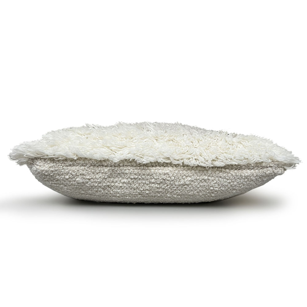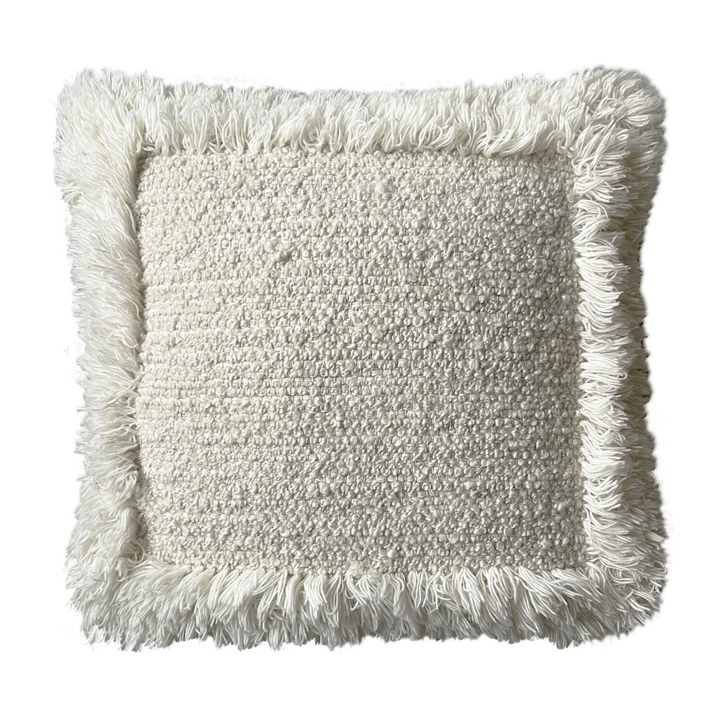 100%Wool (handmade). 50x50cm. Use this beautiful decorative cushion with a silky feel on your couch to ensure you always have a warm, soft cushion to chill. Dry clean only.