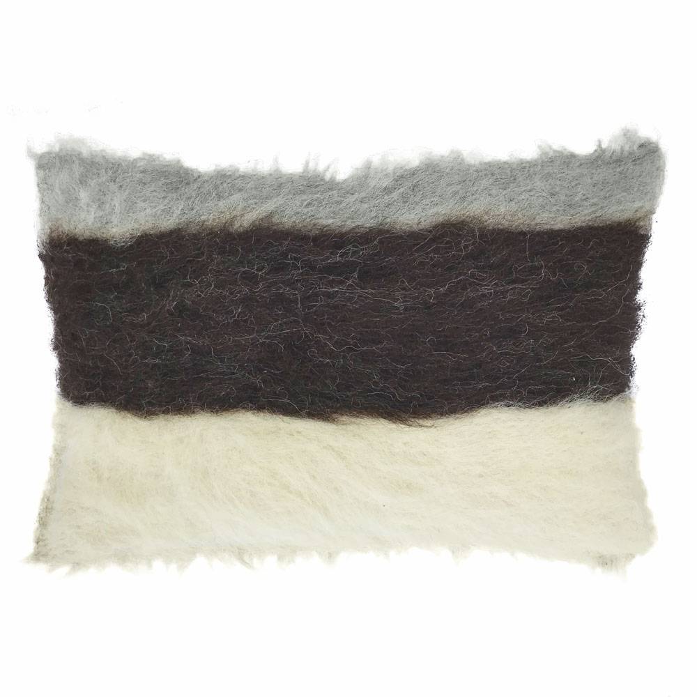 100%Wool. Size 40x70cm. A soft 100% wool cushion with a big woven stripe design in shades of grey, black and offwhite. This fully manually woven cushion is a beautiful addition in your home. Dry cleaning only.