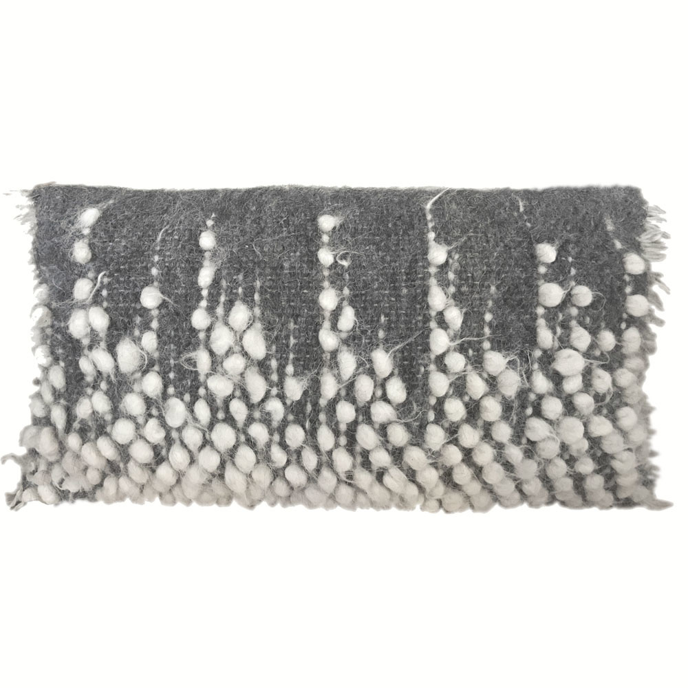 is toegevoegd aan uw winkelwagen100%Wool. Size 50x50cm. A soft 100% wool cushion with a big woven stairway design in shades of grey and black. This fully manually woven cushion is a beautiful addition in your home. Dry cleaning only.